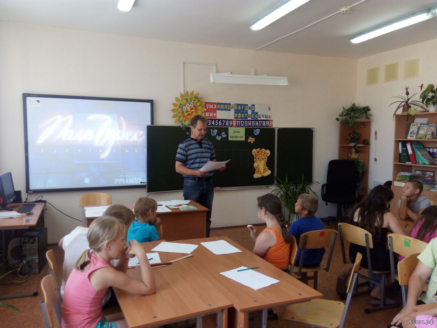 Сегодня пришкольном лагере «Солнышко» прошёл «День природы». Во время игры «Поле чудес» ребята получили ответы на такие вопросы как: Сколько ног у паука? Сколько лет живет черепаха? А чем поет кузнечик? Вопросы игры были и серьезные, и смешные. Но зато экологи много узнали о жизни животных, об экологии… Так же ребята побывали на экскурсии и изучили деревья, которые растут на берегу реки Северский Донец.