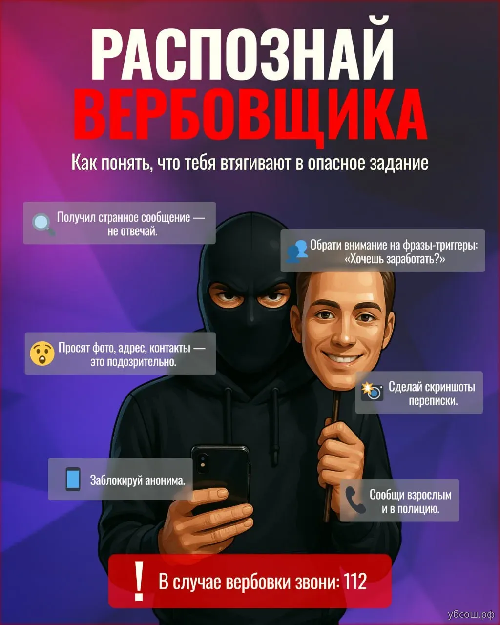 🔍 Вербовка может происходить в различных формах: от влияние сверстников до манипуляций через социальные сети. Важно понимать, что любой человек может стать объектом вербовки, и именно поэтому необходимо быть внимательными и осторожными.