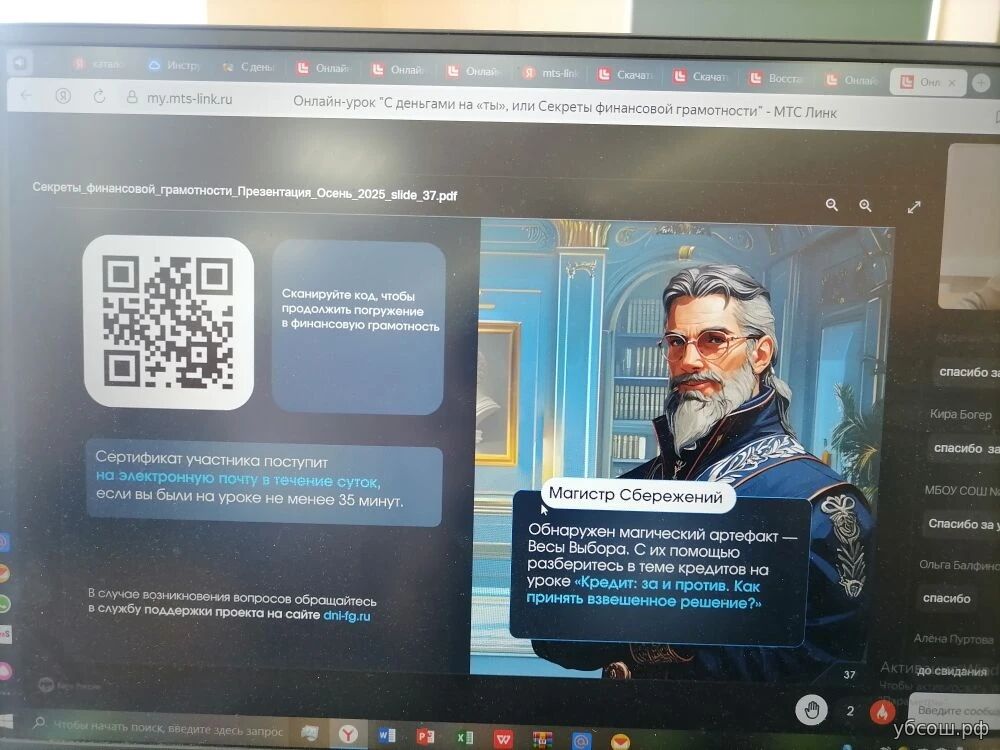 «Онлайн-уроки финансовой грамотности для школьников (dni-fg.ru)» проводились в нашей школе с 18 сентября по 17 декабря 2025 года. Обучающиеся 6 - 11 классов приняли участие в онлайн-уроках, став участниками занимательного путешествия в единую игровую среду – Город Финансов.
